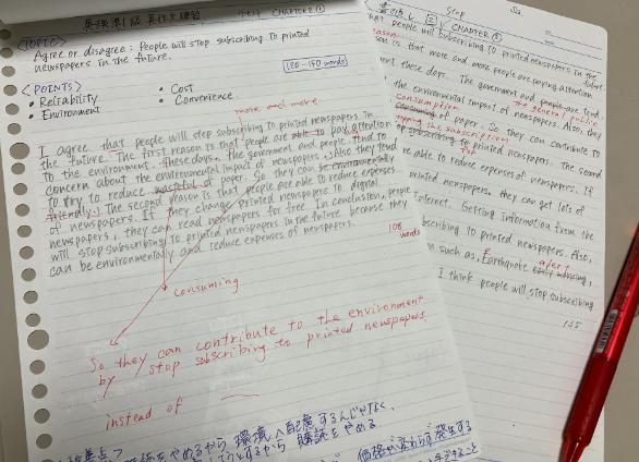 2024年度第一回英検(R)より、3級以上の級で、ライティング問題が1問増えることになりました。当教室では、英検を受験予定の生徒の皆さんに、毎週一問以上のライティング問題を課題に出し、個別に添削を行っています。英検合格の基準を満たすためには、最低6割の点数を取る必要があります。準1級を目指す生徒さんも多く在籍しています。