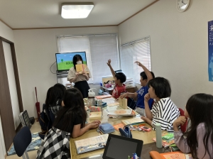 新学期から一か月が過ぎ、みなさん音読学習に励んでいます。絵本の内容に関する質問を英語で問われ、覚えた英語を使って答えてくれています。内容が難しいときは、中級クラス2年目の生徒さんが、自らお手本を示してくれます。